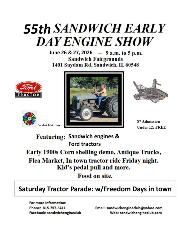 The 2024 Show is in the books. Friday was a little damp at times. Saturday turned out great, sunny, dry and warm. The Sandwich club would like to Thank all of the participants who came out and showed engines and tractors. Thanks to all the club members for all there help, it takes a small army to get it done. Thanks Again.